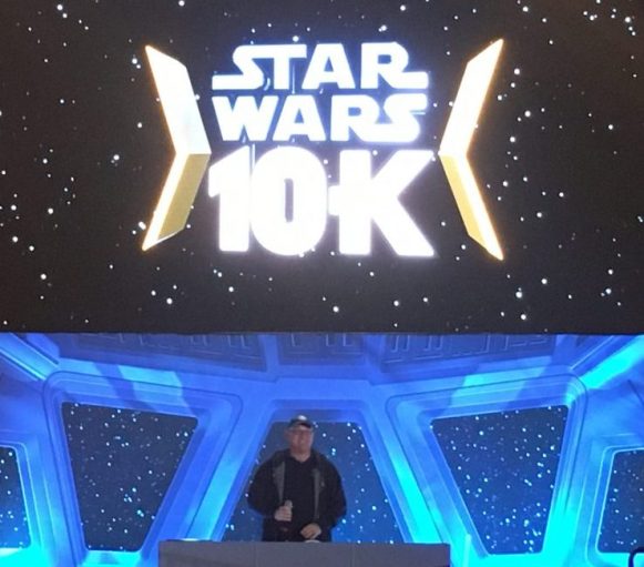 [lgc_column grid=”50″ tablet_grid=”50″ mobile_grid=”100″ last=”false”]This is my least favorite part of any race I have ever run, standing in the starting corral waiting for it to start. It’s usually staring at my phone except nothing much is happening at 5 am for me to read and no one is awake to talk to. I had several friends running but they all had their own groups, and I didn’t even know for sure what corrals they were in. I wound up behind a group of Tie-Fighters. They had the wings tied to their arms, and while it looked amazing I don’t know how you’d make it through the more narrow parts of the course without knocking someone out. I applaud their construction though: foam core and duck tape. Simple, cheap and lightweight! They screened The Last Jedi trailer which was awesome, but I was too far back to see it very well. I did hear a guy yell, “QUITTER!” After Luke’s line about the Jedi needing to end.[/lgc_column]