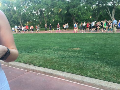 The run between Hollywood Studios and Epcot through the Boardwalk is a very tight one. It’s a sidewalk, a literal sidewalk, and it’s not wide enough to accommodate many people at once. There’s a lot of bumping and unintentional shoving. I’m also not a fan of running on the Boardwalk. It wasn’t wet this morning but it’s been wet previous races, and I watched a guy wipe out super hard taking a turn too fast during the Wine and Dine.